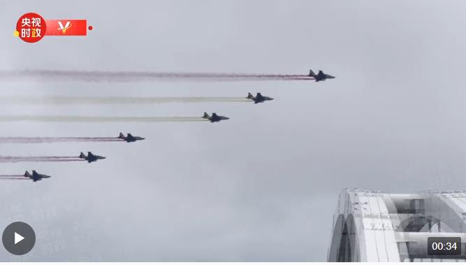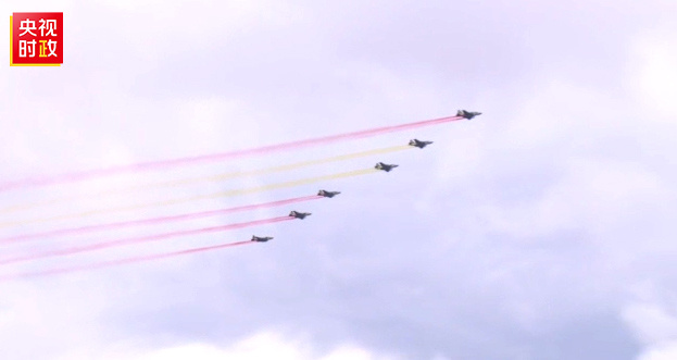 習近平主席車隊抵達哈薩克斯坦總統(tǒng)府時,六架哈薩克斯坦空軍戰(zhàn)機從總統(tǒng)府上空飛過,拉出象征中國國旗的紅黃色彩帶,以最高禮儀歡迎習近平主席。
