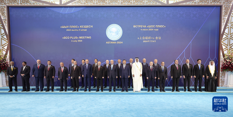 當?shù)貢r間7月4日下午,國家主席習近平在阿斯塔納出席“上海合作組織+”阿斯塔納峰會并發(fā)表題為《攜手構建更加美好的上海合作組織家園》的重要講話。