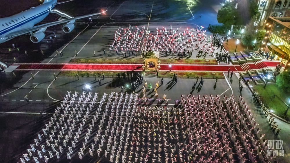 塔方在機(jī)場舉行的盛大迎賓儀式。(總臺(tái)央視記者邢彬)