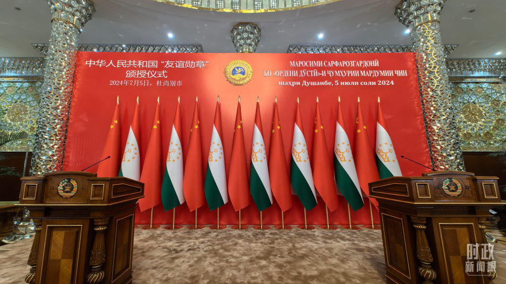 此訪期間,中塔友誼見證又一個(gè)“高光時(shí)刻”:習(xí)近平主席在杜尚別總統(tǒng)府舉行隆重授勛儀式,向拉赫蒙總統(tǒng)頒授中華人民共和國“友誼勛章”。