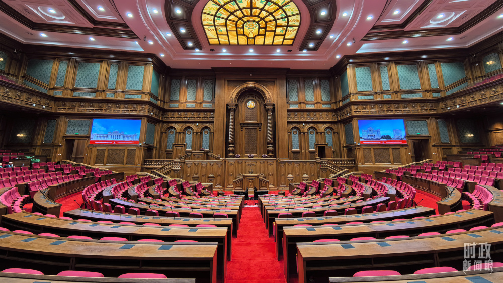 中方援建塔議會(huì)大樓內(nèi)的聯(lián)席議會(huì)廳。(總臺(tái)央視記者陸泓宇拍攝)