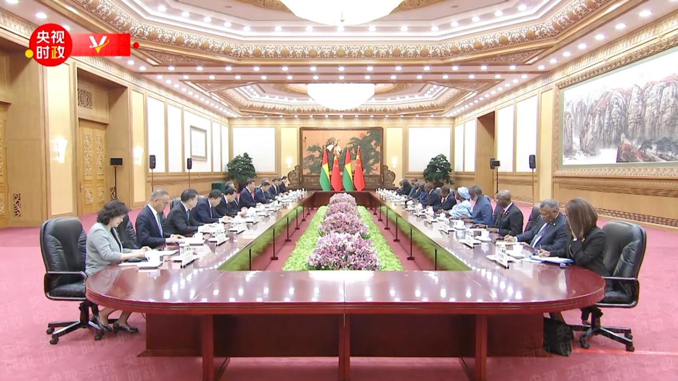 7月10日下午,國家主席習(xí)近平在北京人民大會(huì)堂同來華進(jìn)行國事訪問的幾內(nèi)亞比紹總統(tǒng)恩巴洛舉行會(huì)談。