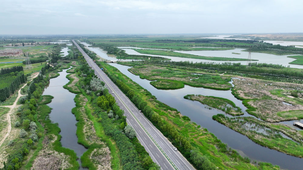 這是2024年6月13日拍攝的黃河寧夏段濱河大道(無人機照片)。近年來,寧夏努力建設黃河流域生態(tài)保護和高質(zhì)量發(fā)展先行區(qū),全力打好黃河保護持久戰(zhàn)。新華社記者 王鵬 攝