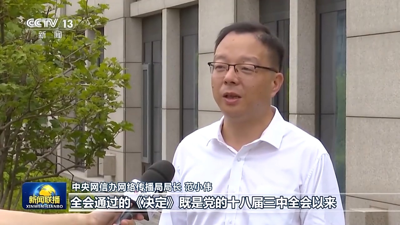 中央網(wǎng)信辦網(wǎng)絡(luò)傳播局局長 范小偉:全會通過的《決定》,既是黨的十八屆三中全會以來全面深化改革的實(shí)踐續(xù)篇,也是新時代新征程推進(jìn)中國式現(xiàn)代化的時代新篇。我們將深入學(xué)習(xí)貫徹全會精神,進(jìn)一步增強(qiáng)堅(jiān)定擁護(hù)“兩個確立”、堅(jiān)決做到“兩個維護(hù)”的政治自覺,適應(yīng)信息技術(shù)發(fā)展新形勢,不斷健全網(wǎng)絡(luò)綜合治理體系,進(jìn)一步加強(qiáng)網(wǎng)絡(luò)文明建設(shè),更好服務(wù)黨和國家工作大局。