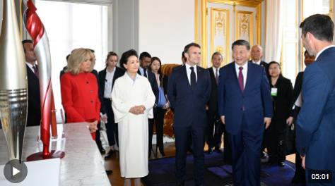 兩個多月前,國家主席習(xí)近平在巴黎愛麗舍宮同法國總統(tǒng)馬克龍舉行會談。會談前,兩國元首夫婦互贈禮品。習(xí)近平主席贈送給馬克龍總統(tǒng)的是北京雙奧火炬,馬克龍總統(tǒng)則以巴黎奧運火炬回贈。習(xí)近平主席說:“法國是一個體育強國,我衷心祝愿巴黎奧運會取得成功。中方將派出高水平代表團赴法參賽?!?/p>