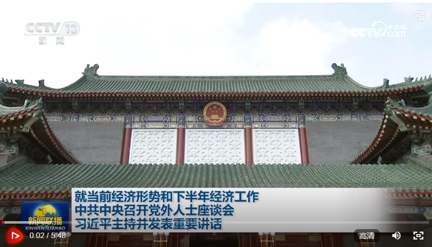 7月26日,中共中央在中南海召開(kāi)黨外人士座談會(huì),就當(dāng)前經(jīng)濟(jì)形勢(shì)和下半年經(jīng)濟(jì)工作聽(tīng)取各民主黨派中央、全國(guó)工商聯(lián)負(fù)責(zé)人和無(wú)黨派人士代表的意見(jiàn)和建議。中共中央總書(shū)記習(xí)近平主持座談會(huì)并發(fā)表重要講話強(qiáng)調(diào),做好下半年經(jīng)濟(jì)工作,要全面貫徹落實(shí)中共二十大和二十屆二中、三中全會(huì)精神,堅(jiān)持穩(wěn)中求進(jìn)工作總基調(diào),完整、準(zhǔn)確、全面貫徹新發(fā)展理念,加快構(gòu)建新發(fā)展格局,因地制宜發(fā)展新質(zhì)生產(chǎn)力,著力推動(dòng)高質(zhì)量發(fā)展,圍繞推進(jìn)中國(guó)式現(xiàn)代化進(jìn)一步全面深化改革,加大宏觀調(diào)控力度,深化創(chuàng)新驅(qū)動(dòng)發(fā)展,深入挖掘內(nèi)需潛力,不斷增強(qiáng)新動(dòng)能新優(yōu)勢(shì),增強(qiáng)經(jīng)營(yíng)主體活力,穩(wěn)定市場(chǎng)預(yù)期,增強(qiáng)社會(huì)信心,增強(qiáng)經(jīng)濟(jì)持續(xù)回升向好態(tài)勢(shì),切實(shí)保障和改善民生,保持社會(huì)穩(wěn)定,堅(jiān)定不移實(shí)現(xiàn)全年經(jīng)濟(jì)社會(huì)發(fā)展目標(biāo)。