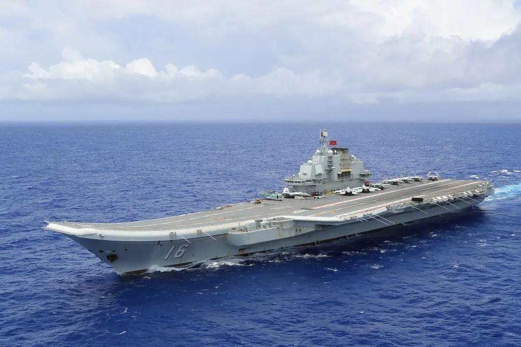 遼寧艦在某海域機(jī)動航行。