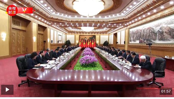8月19日上午,中共中央總書記、國家主席習近平在北京人民大會堂同來華進行國事訪問的越共中央總書記、國家主席蘇林舉行會談。