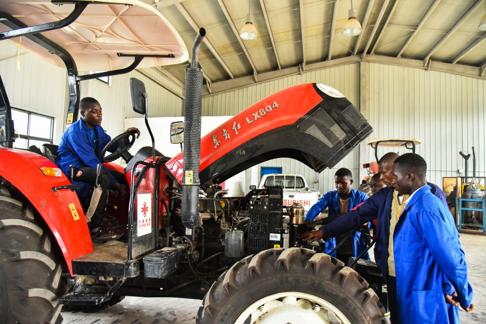 2023年1月12日,學(xué)生在喀麥隆亞巴西農(nóng)業(yè)職業(yè)技術(shù)中學(xué)上拖拉機(jī)實(shí)踐課。亞巴西農(nóng)業(yè)職業(yè)技術(shù)中學(xué)由中方援建,是喀麥隆第一所農(nóng)業(yè)技術(shù)學(xué)校。新華社發(fā)(科普索攝)