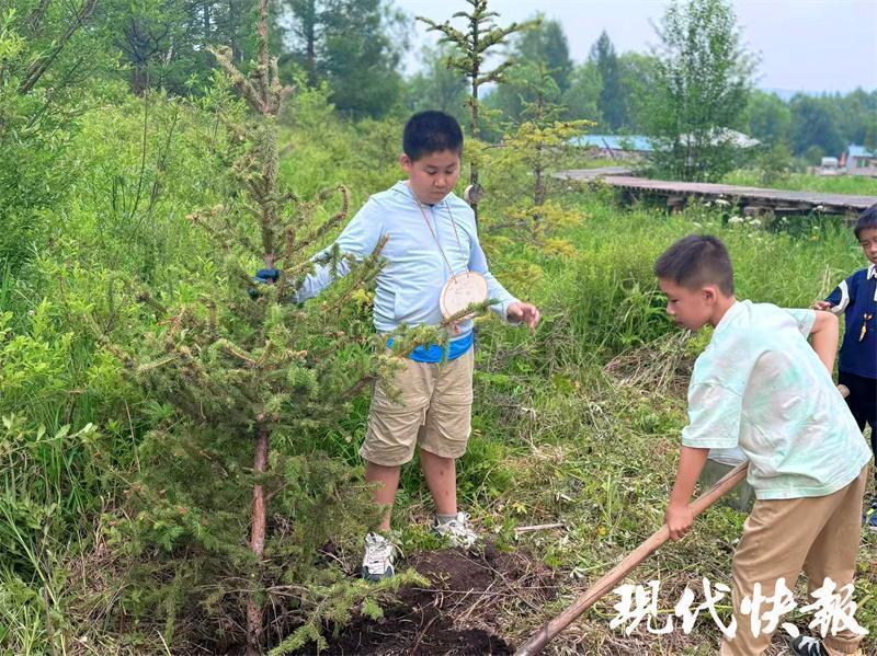 這樣的美麗風(fēng)景讓第一次來到大草原的周云昊很興奮?!拔覀儚漠?dāng)?shù)亓私獾剑@是一代又一代人努力的結(jié)果,讓我們也深切感受到生態(tài)保護(hù)的重要性?!毖袑W(xué)途中,周云昊和小伙伴們還專門在當(dāng)?shù)亓謭龇N下一棵樹?!跋M芙】甸L大,成為守護(hù)綠色草原的小衛(wèi)士。”