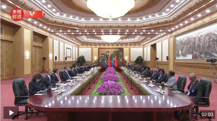 9月2日下午,國家主席習(xí)近平在北京人民大會(huì)堂同來華出席中非合作論壇峰會(huì)并進(jìn)行國事訪問的南非總統(tǒng)拉馬福薩舉行會(huì)談。