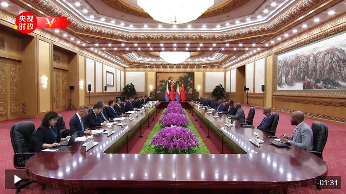 9月2日上午,國家主席習近平在北京人民大會堂會見來華出席中非合作論壇峰會的科摩羅總統(tǒng)阿扎利。