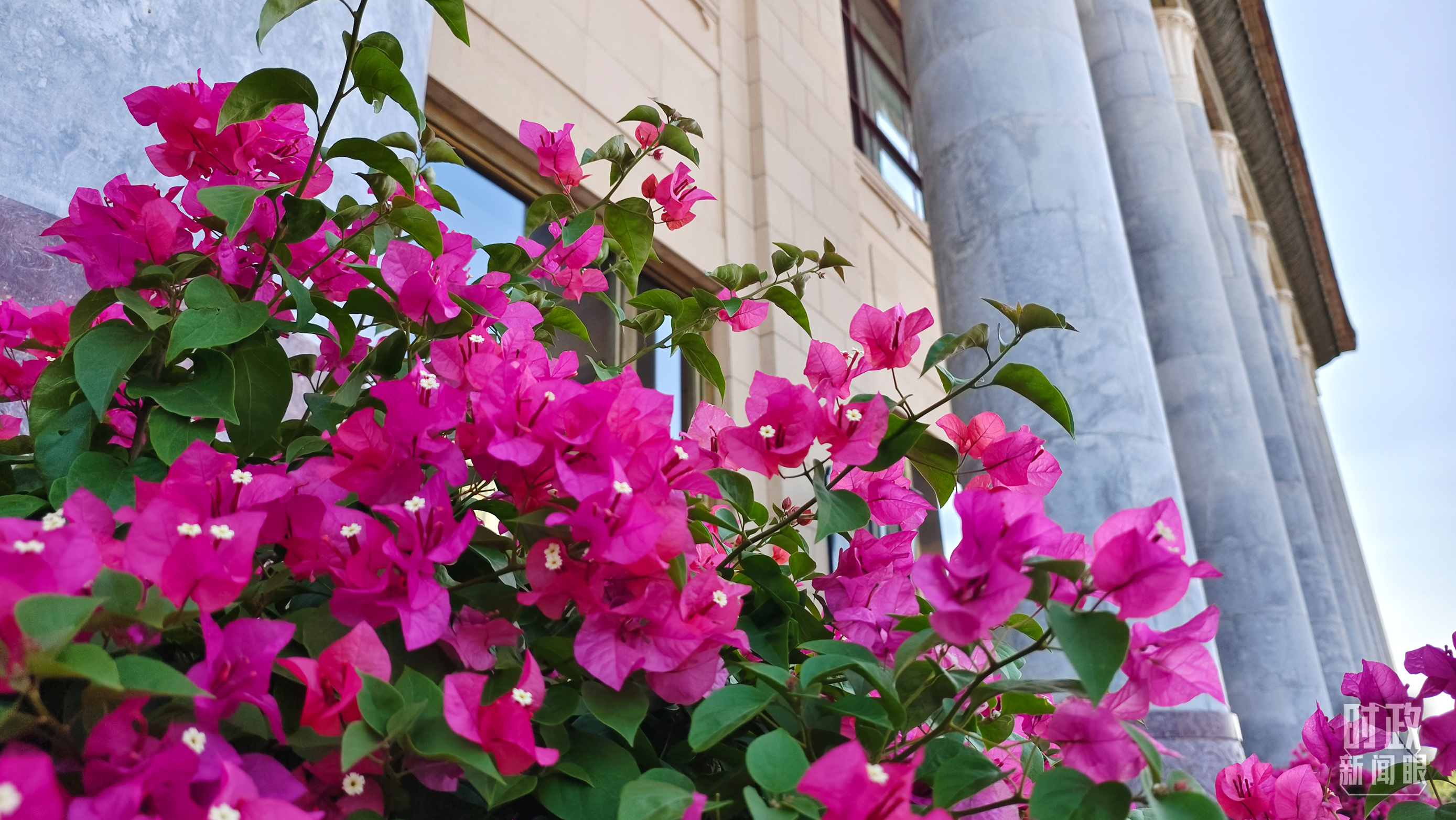 人民大會堂外花團(tuán)錦簇。(總臺央視記者韓銳拍攝)