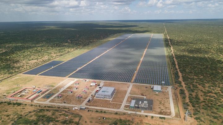 這是2019年12月13日拍攝的肯尼亞加里薩50兆瓦光伏發(fā)電站。新華社記者 謝晗 攝