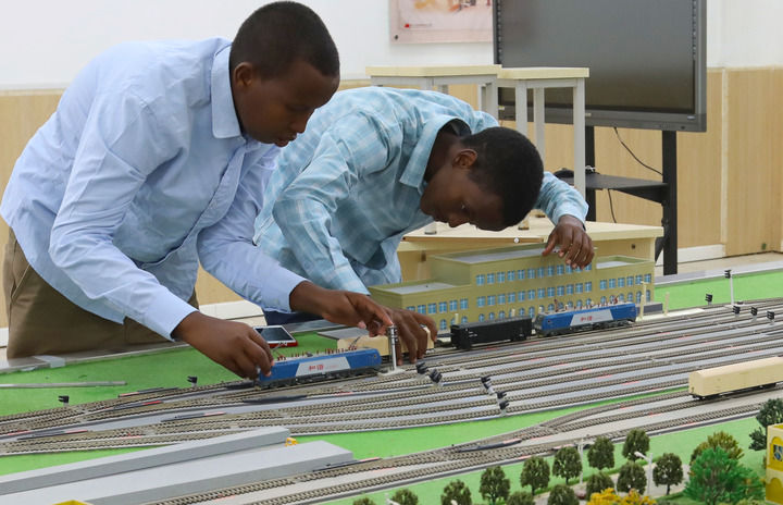 2022年9月19日,在位于吉布提首都吉布提市的吉布提工商學(xué)校,學(xué)生在魯班工坊鐵道運(yùn)營(yíng)沙盤(pán)教學(xué)區(qū)學(xué)習(xí)。新華社記者 董江輝 攝