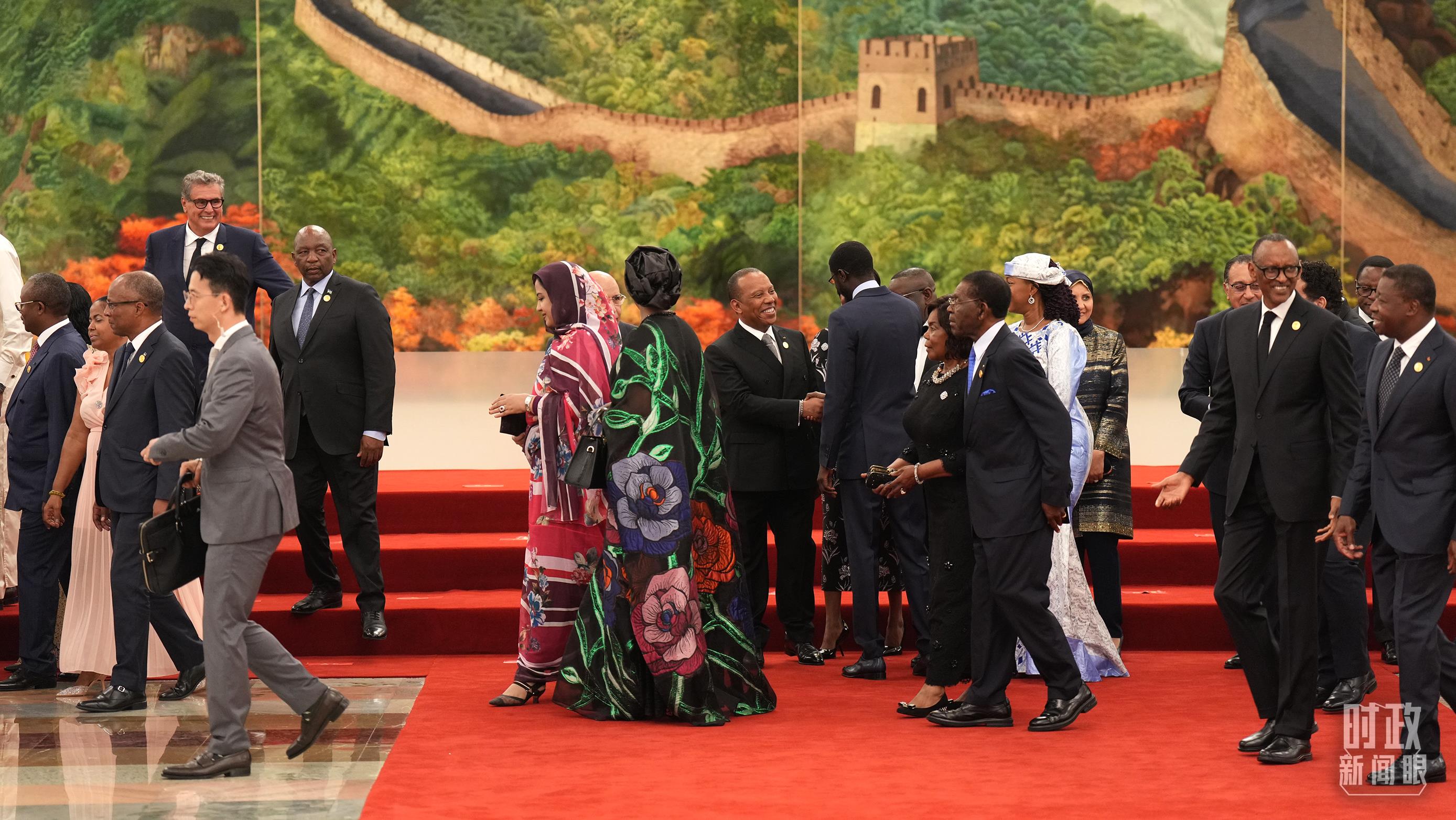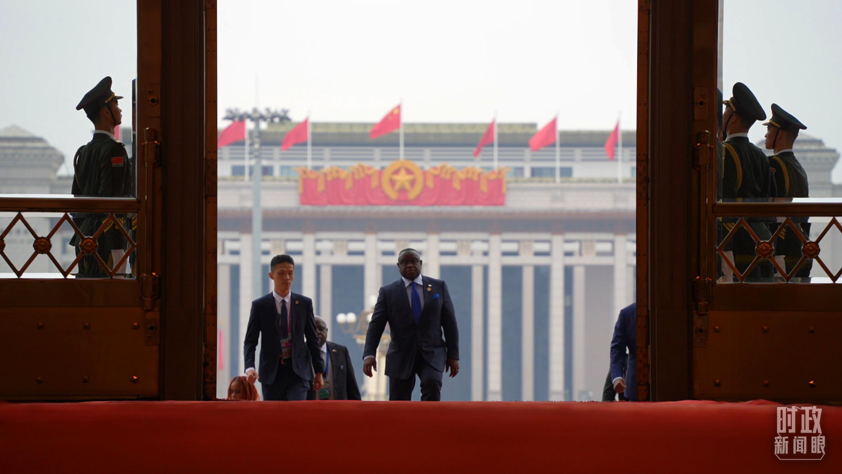 非洲國(guó)家領(lǐng)導(dǎo)人步入人民大會(huì)堂。(總臺(tái)央視記者趙怡彬拍攝)