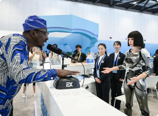 △中國(guó)剛剛在世界機(jī)器人大會(huì)上展出的智能語音機(jī)器人也在中非合作論壇上亮相