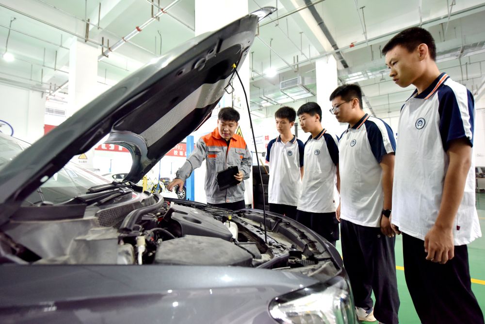 2024年6月7日,河北省邢臺(tái)市威縣職業(yè)技術(shù)教育中心教師在指導(dǎo)學(xué)生學(xué)習(xí)汽車(chē)維修技術(shù)。新華社記者 王曉 攝