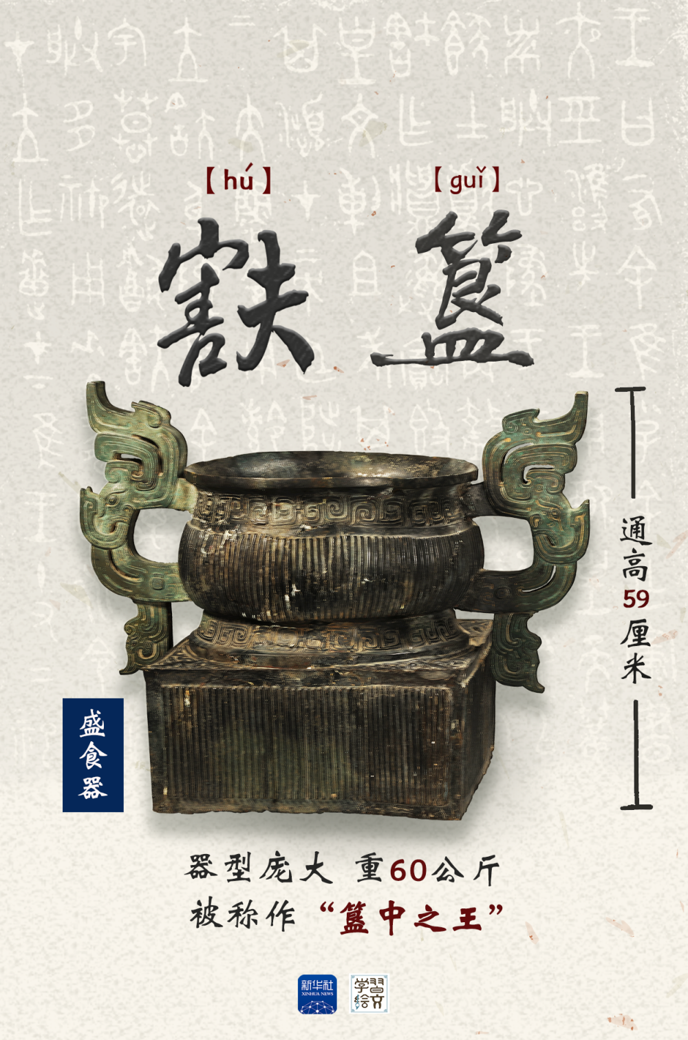 現(xiàn)展出于寶雞青銅器博物院的?簋號(hào)稱(chēng)“簋中之王”。圓形簋身與方形底座相連,簋內(nèi)鑄有銘文124字,由此得知它是西周第十位天子周厲王姬?為祭祀先祖、祈神降福而作。