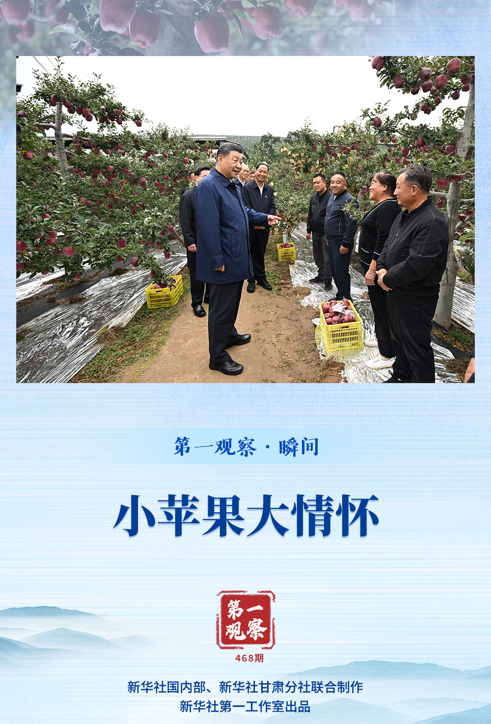 9月11日上午,習(xí)近平總書記來到甘肅天水市麥積區(qū)南山花牛蘋果基地考察。新華社記者定格了這樣一個瞬間——