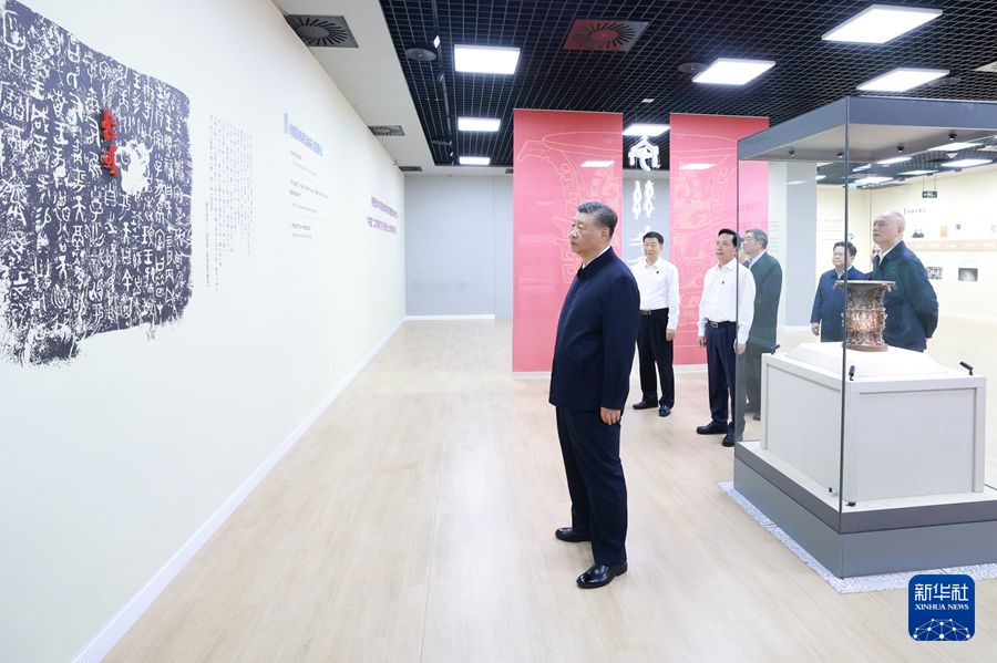 9月10日,中共中央總書(shū)記、國(guó)家主席、中央軍委主席習(xí)近平在前往甘肅考察途中,來(lái)到陜西省寶雞市參觀寶雞青銅器博物院。新華社記者 王曄 攝