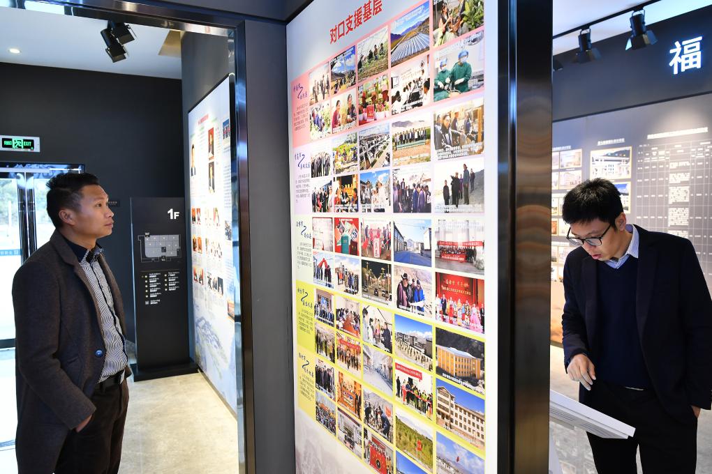 2019年4月1日,人們?cè)谌珖?guó)援藏展覽館內(nèi)參觀。新華社記者李鑫 攝