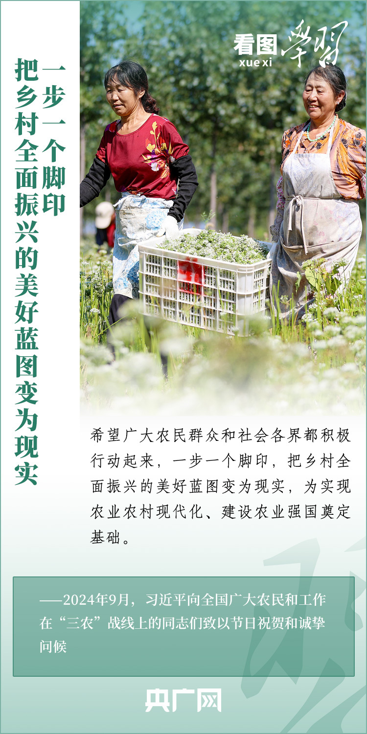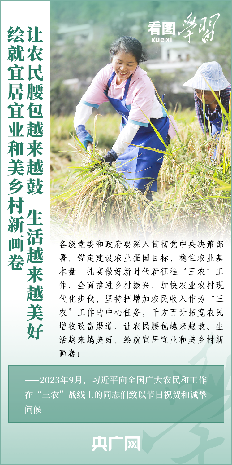 民族要復(fù)興,鄉(xiāng)村必振興。黨的十八大以來(lái),每到各地考察調(diào)研,習(xí)近平總書(shū)記總會(huì)去農(nóng)村看一看,走進(jìn)田間地頭,和農(nóng)民拉拉家常??倳?shū)記強(qiáng)調(diào),“建設(shè)宜居宜業(yè)和美鄉(xiāng)村是農(nóng)業(yè)強(qiáng)國(guó)的應(yīng)有之義”,“要讓農(nóng)民腰包越來(lái)越鼓、生活越來(lái)越美好”。