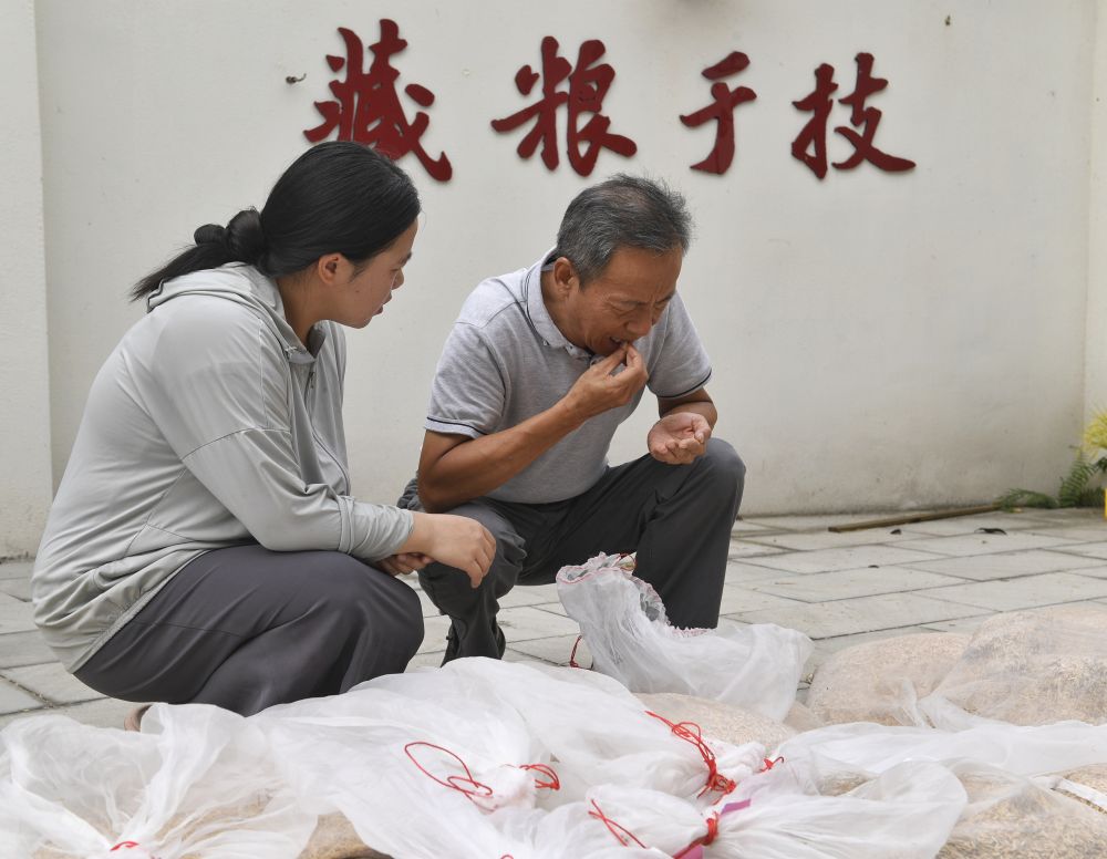 2024年8月22日,在永豐村水稻科技小院,長期駐守在此的四川農業(yè)大學學生測量稻谷含水量。