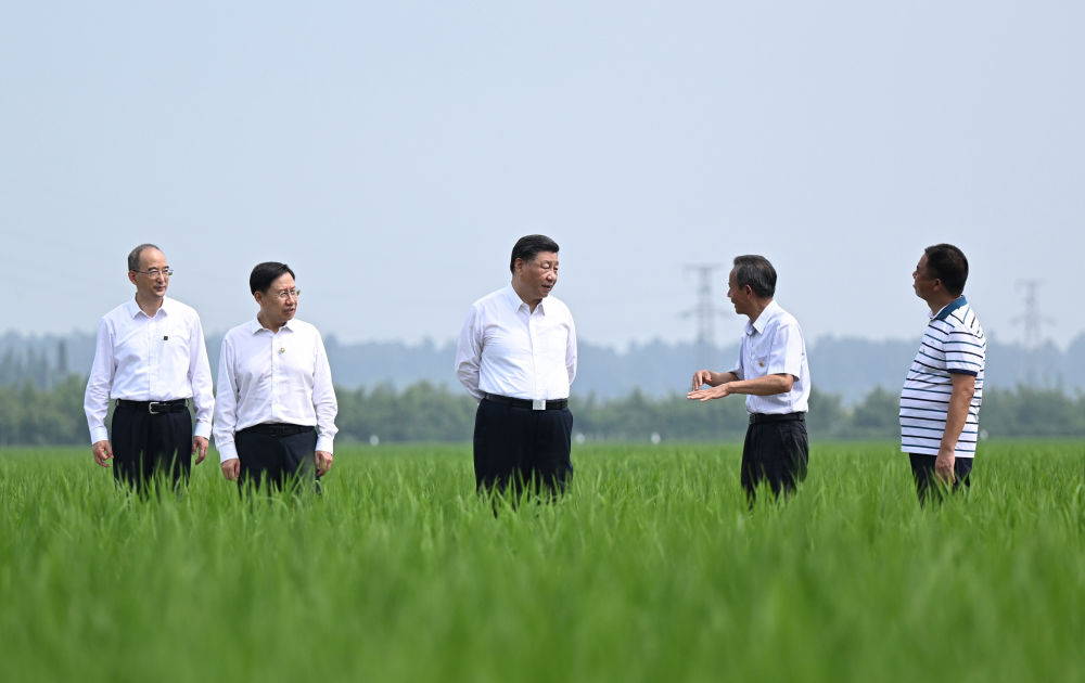 2022年6月8日上午,習近平在四川眉山市東坡區(qū)太和鎮(zhèn)永豐村高標準水稻種植基地考察,了解水稻試驗育種和種植推廣情況。習近平強調:推進農業(yè)現代化,既要靠農業(yè)專家,也要靠廣大農民。要加強現代農業(yè)科技推廣應用和技術培訓,把種糧大戶組織起來,積極發(fā)展綠色農業(yè)、生態(tài)農業(yè)、高效農業(yè)。我們有信心、有底氣把中國人的飯碗牢牢端在自己手中。