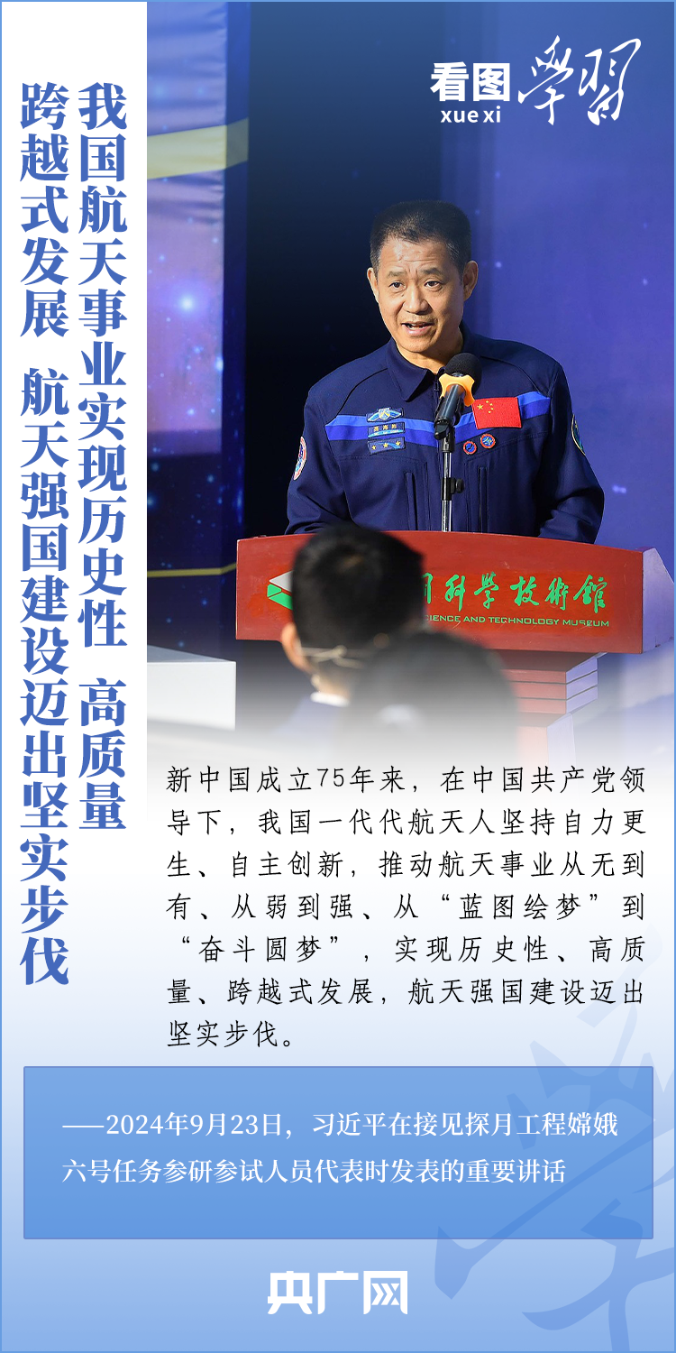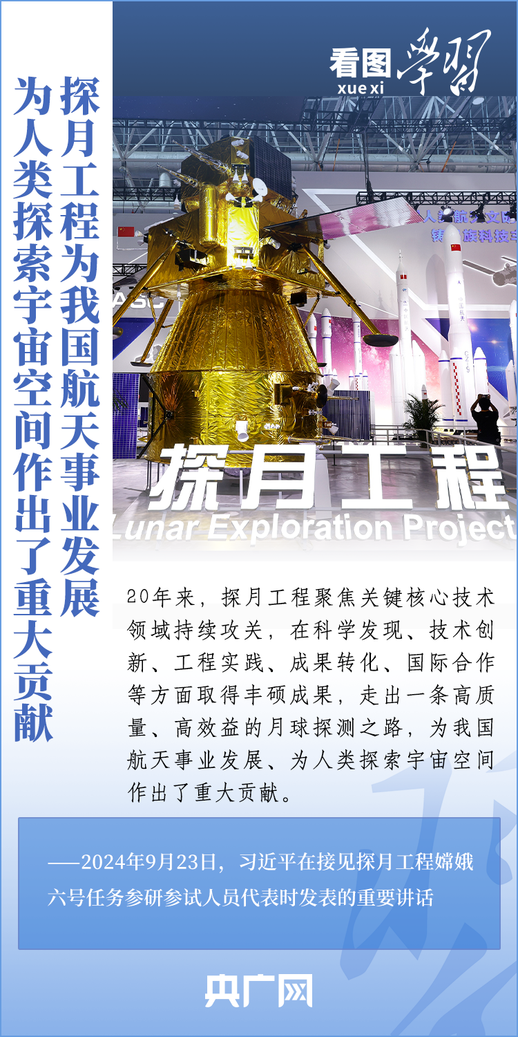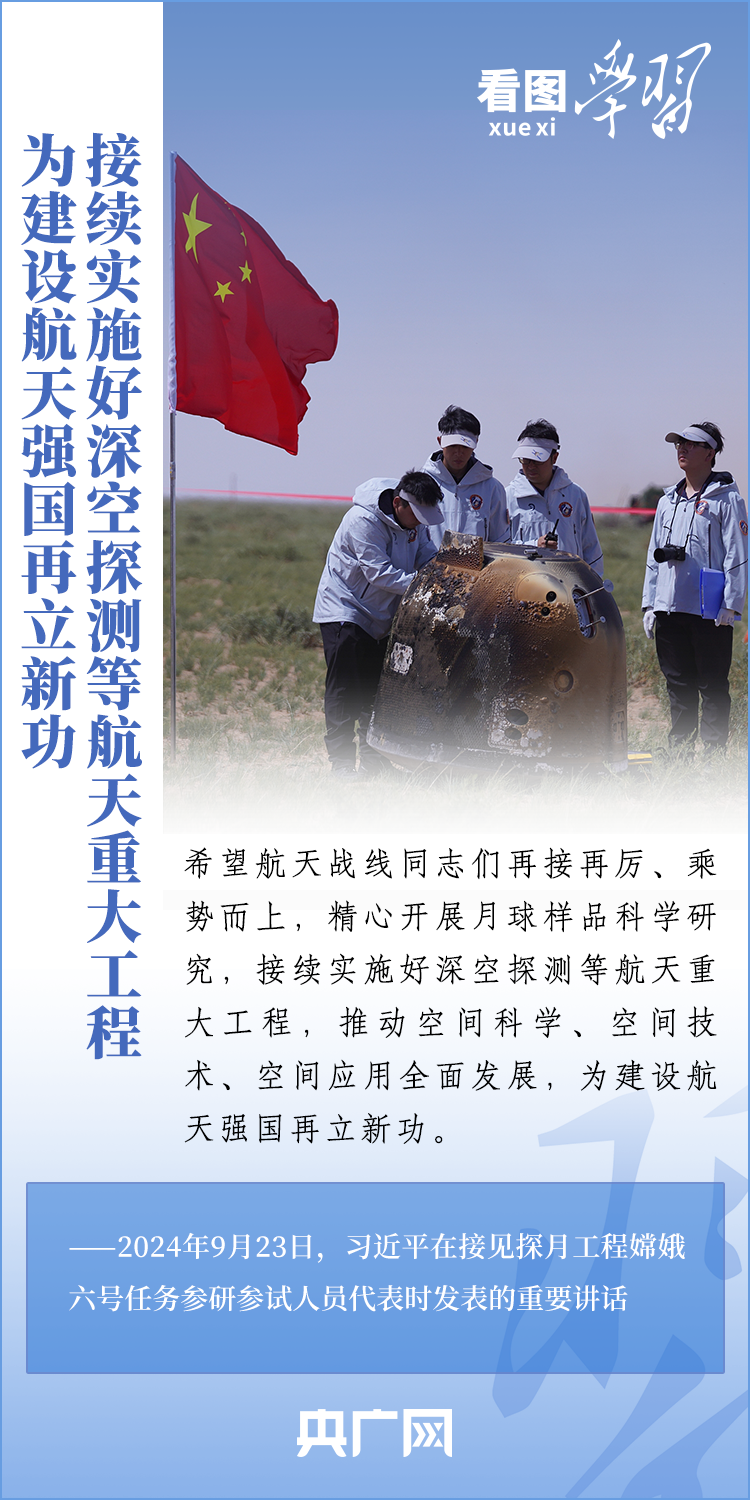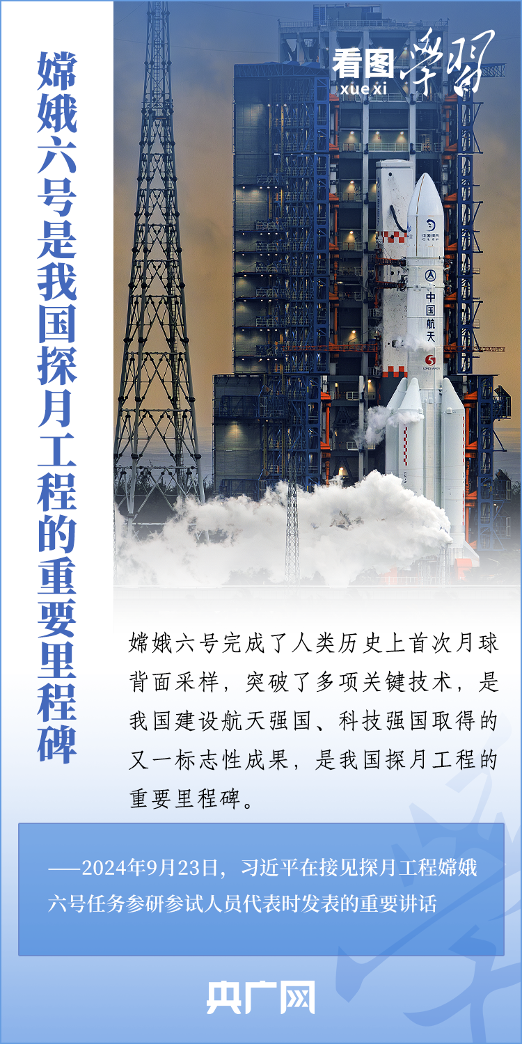 中國(guó)探月工程成果凝結(jié)著我國(guó)幾代航天人的智慧和心血。9月23日,習(xí)近平總書(shū)記接見(jiàn)探月工程嫦娥六號(hào)任務(wù)參研參試人員代表并發(fā)表重要講話??倳?shū)記高度肯定嫦娥六號(hào)任務(wù)成功的重要意義,以及探月工程為我國(guó)航天事業(yè)發(fā)展、為人類(lèi)探索宇宙空間作出的重大貢獻(xiàn),勉勵(lì)航天戰(zhàn)線工作者再接再厲、乘勢(shì)而上,為建設(shè)航天強(qiáng)國(guó)再立新功。一起來(lái)學(xué)習(xí)!