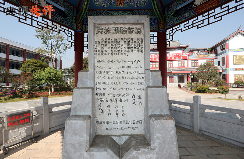 普洱民族團結(jié)誓詞碑被譽為“新中國民族團結(jié)第一碑”。1950年,云南普洱專區(qū)各族代表應(yīng)邀到北京參加新中國成立一周年慶?;顒樱艿矫珴蓶|等黨和國家領(lǐng)導(dǎo)人親切接見。1951年元旦,普洱專區(qū)各族群眾舉行盟誓大會,以少數(shù)民族的風(fēng)俗習(xí)慣立下誓詞碑。盟誓立碑后,各民族兄弟姐妹用實際行動踐行“一心一德跟黨走”的錚錚誓言,推動邊疆地區(qū)經(jīng)濟社會發(fā)展取得了歷史性成就,書寫了民族團結(jié)進步生動篇章。