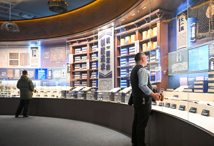2023年12月23日,參觀者在北京民族文化宮參觀鑄牢中華民族共同體意識文物古籍展。新華社記者 郝建偉 攝
