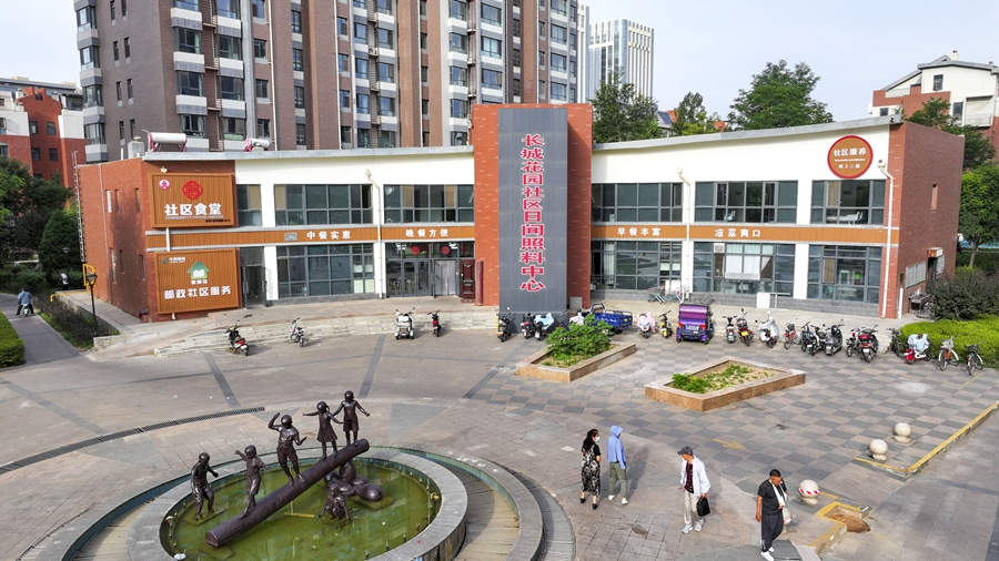 這是2024年6月20日拍攝的寧夏銀川市金鳳區(qū)長城花園社區(qū)日間照料中心(無人機(jī)照片)。新華社記者 馮開華 攝