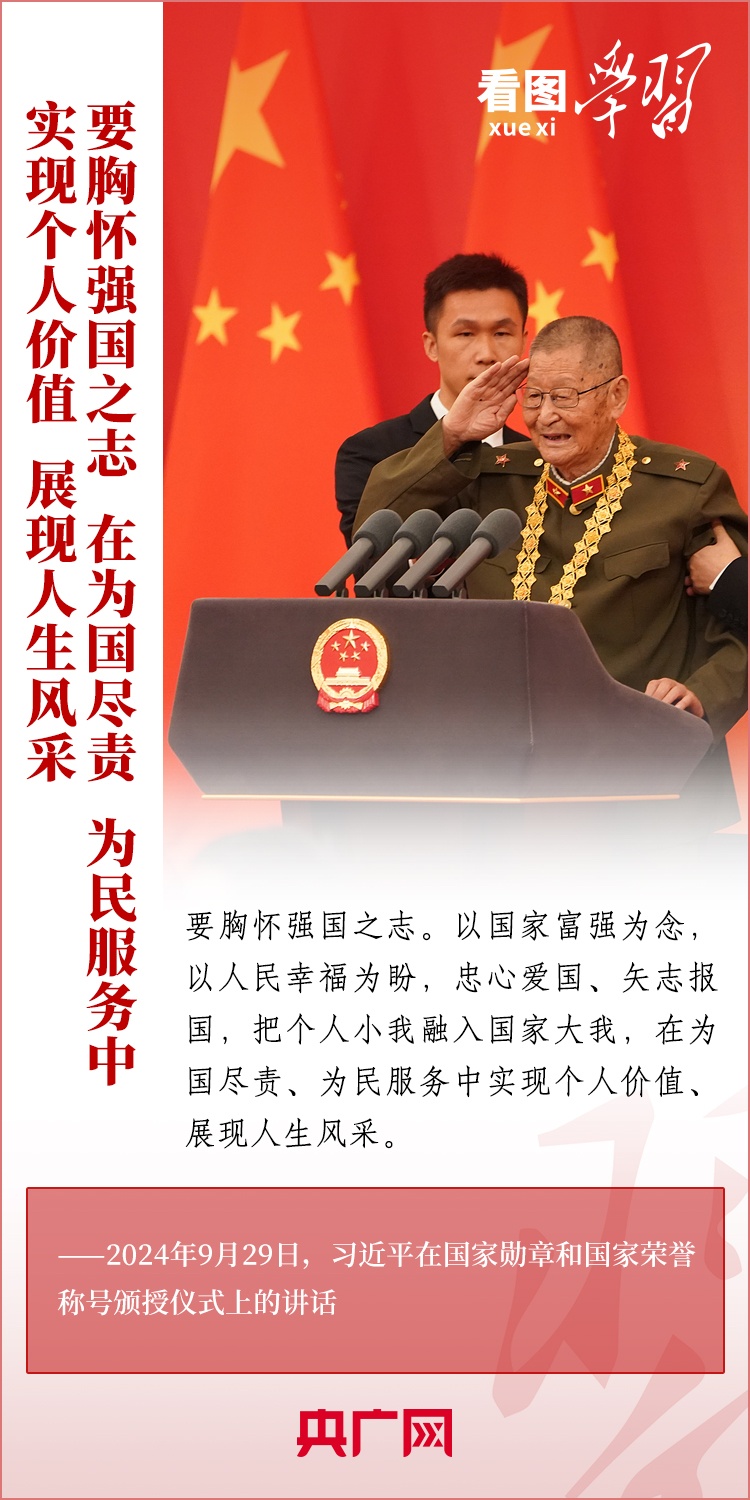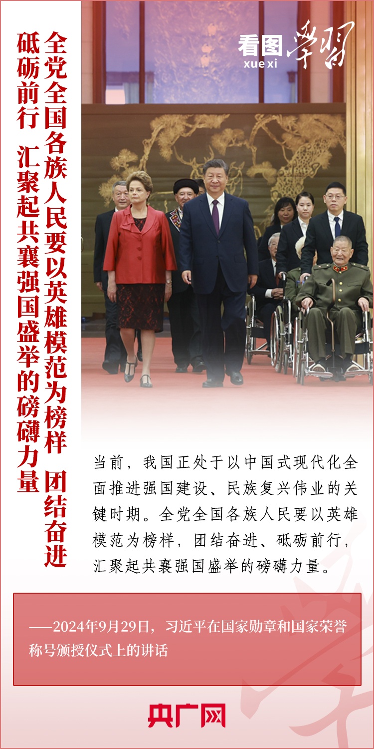 9月29日,中華人民共和國國家勛章和國家榮譽稱號頒授儀式在北京舉行,習(xí)近平總書記向國家勛章和國家榮譽稱號獲得者頒授勛章獎?wù)虏l(fā)表重要講話。總書記強調(diào),全黨全國各族人民要以英雄模范為榜樣,團結(jié)奮進、砥礪前行,匯聚起共襄強國盛舉的磅礴力量。一起來學(xué)習(xí)!
