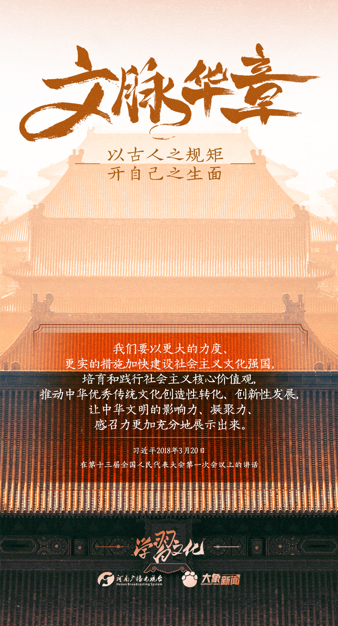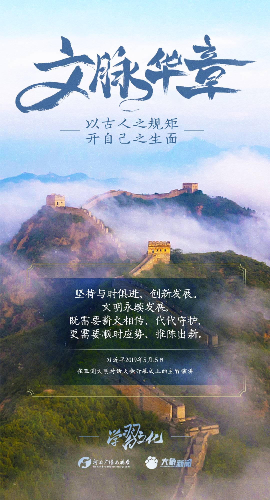 2014年10月15日,習(xí)近平總書記在文藝工作座談會(huì)上的重要講話指出:傳承中華文化,絕不是簡(jiǎn)單復(fù)古,也不是盲目排外,而是古為今用、洋為中用,辯證取舍、推陳出新,摒棄消極因素,繼承積極思想,“以古人之規(guī)矩,開自己之生面”,實(shí)現(xiàn)中華文化的創(chuàng)造性轉(zhuǎn)化和創(chuàng)新性發(fā)展。