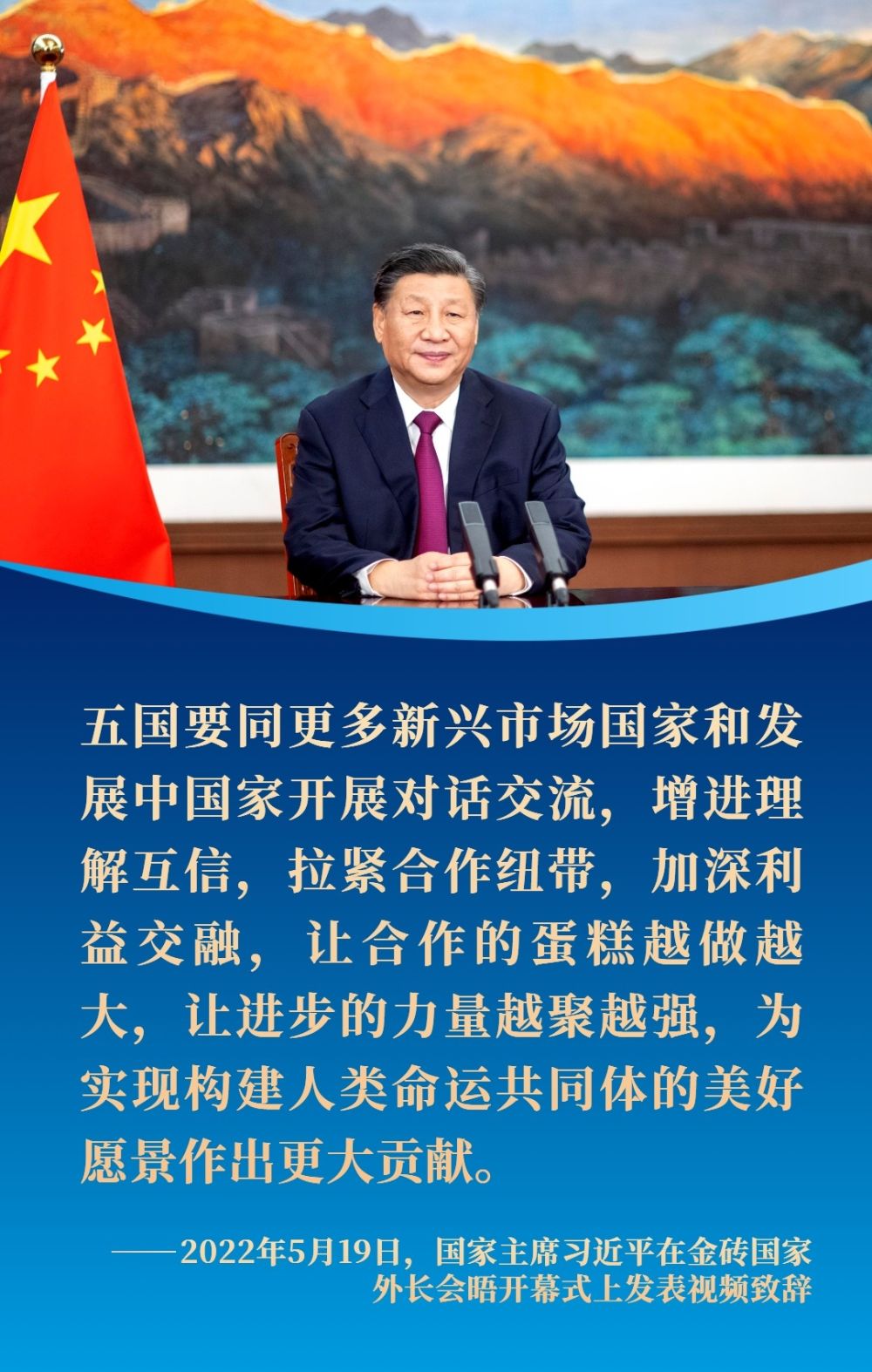 跨越山海,相互成就。中國將同金磚伙伴一道,秉持開放包容、合作共贏精神,堅守團結(jié)自強初心,繼續(xù)書寫攜手發(fā)展的精彩故事。
