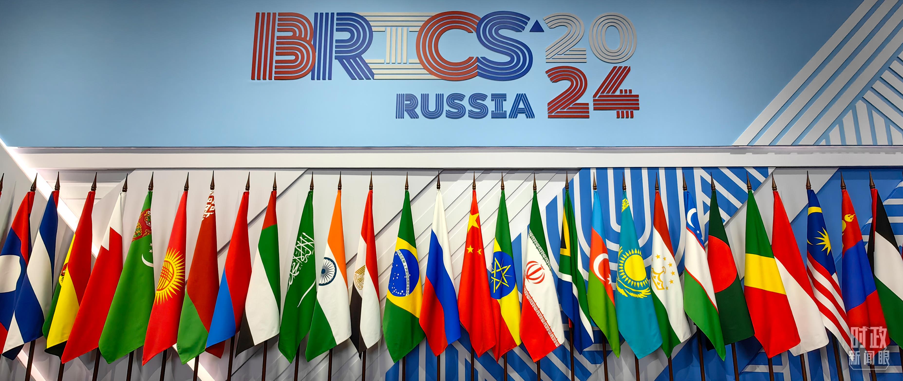 金磚國家領導人大范圍會議現(xiàn)場擺放的旗陣。(總臺央視記者段德文拍攝)