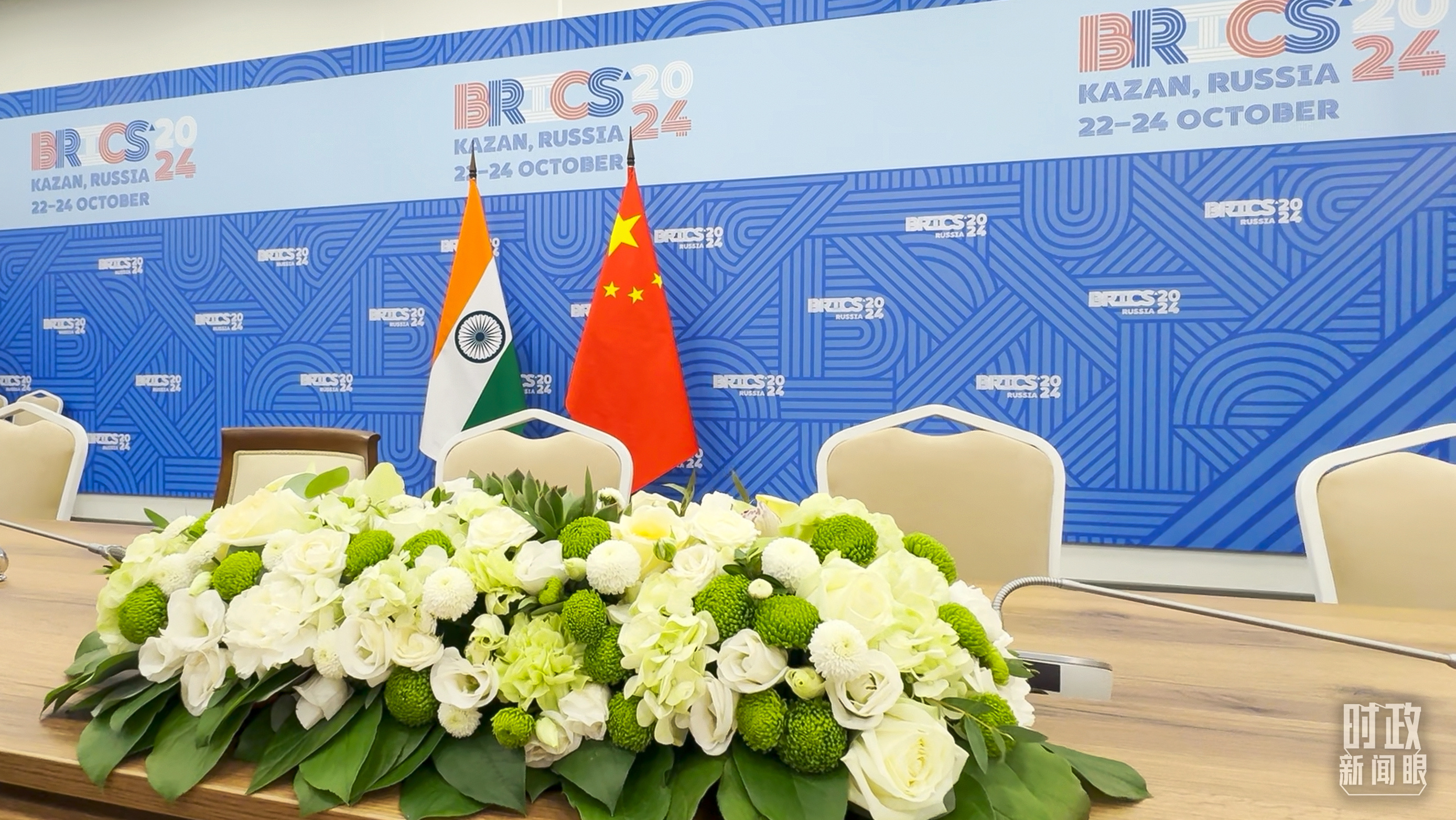 金磚國家領導人小范圍會議現(xiàn)場的會議桌。(總臺央視記者程鋮拍攝)