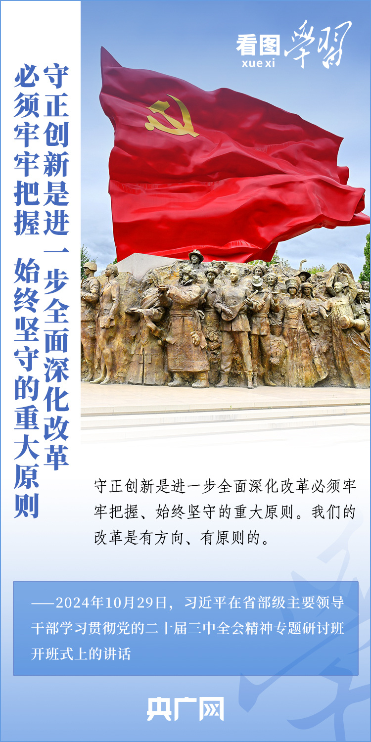 改革只有進(jìn)行時,沒有完成時。10月29日,省部級主要領(lǐng)導(dǎo)干部學(xué)習(xí)貫徹黨的二十屆三中全會精神專題研討班在中央黨校(國家行政學(xué)院)開班。習(xí)近平總書記發(fā)表重要講話,就進(jìn)一步全面深化改革的一系列重大問題進(jìn)行深刻闡釋,強(qiáng)調(diào)要牢牢把握、始終堅(jiān)守“守正創(chuàng)新”這一重大原則,把握好“四對關(guān)系”,奮力打開改革發(fā)展新天地。一起來學(xué)習(xí)!