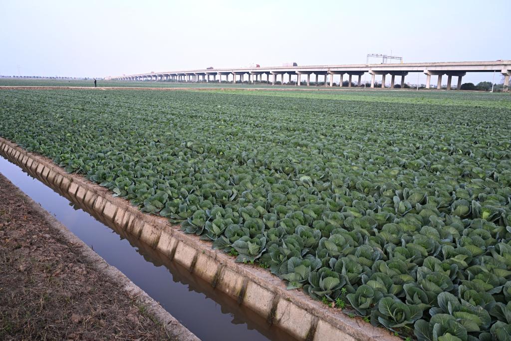 來到嘉魚縣潘家灣鎮(zhèn)的蔬菜種植基地,放眼望去,滿目皆綠。菜農(nóng)們在忙碌著進行松土、除草。連片的包菜、白菜鮮翠欲滴,長勢喜人。