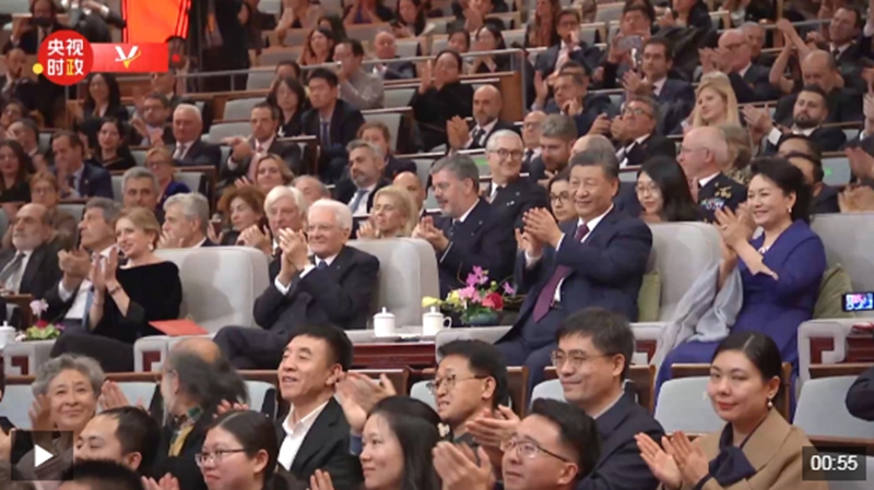 11月8日晚,國家主席習(xí)近平和夫人彭麗媛在北京國家大劇院同意大利總統(tǒng)馬塔雷拉和女兒勞拉一同觀看“奇妙的和諧”——普契尼音樂會(huì)。