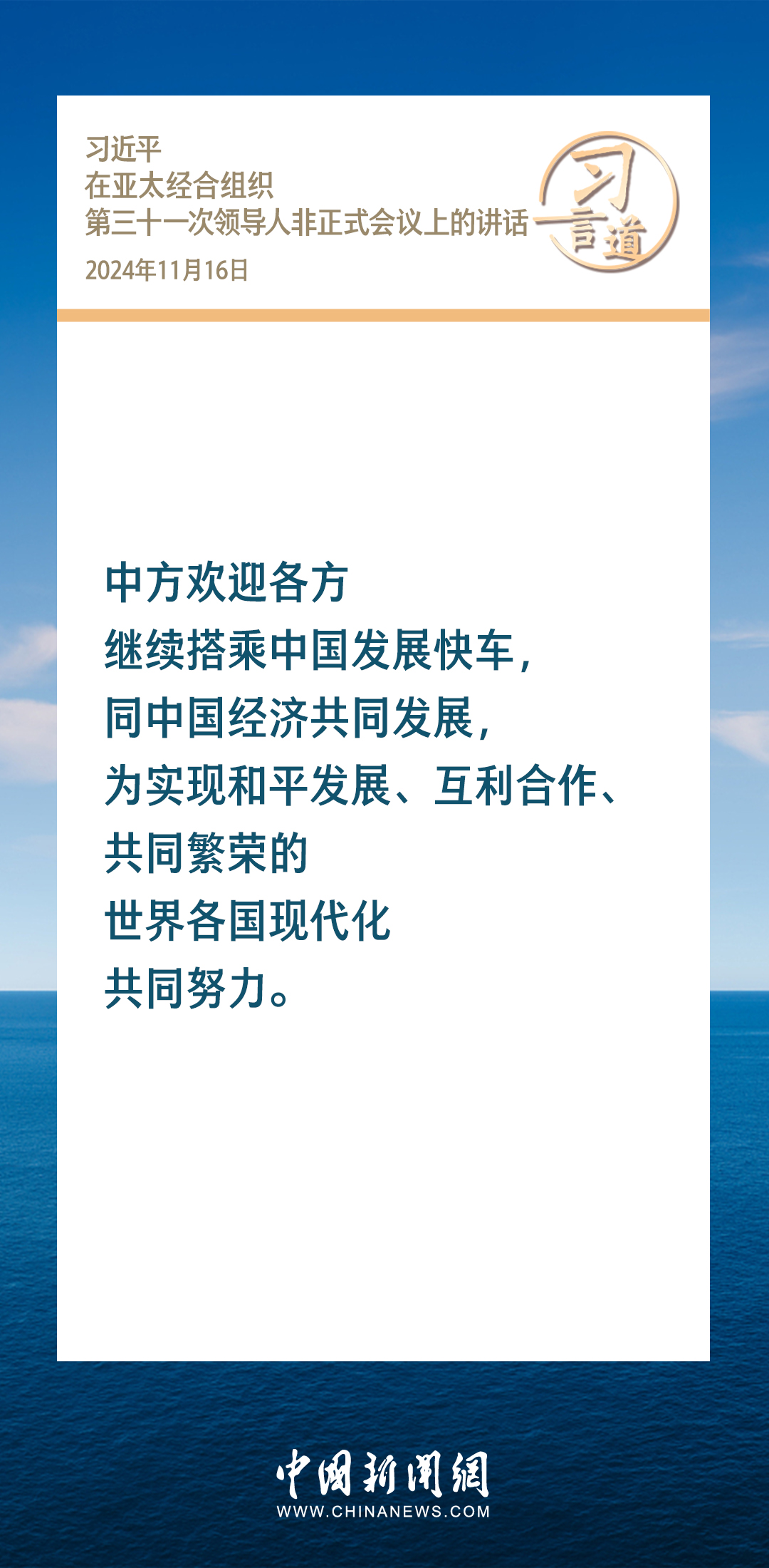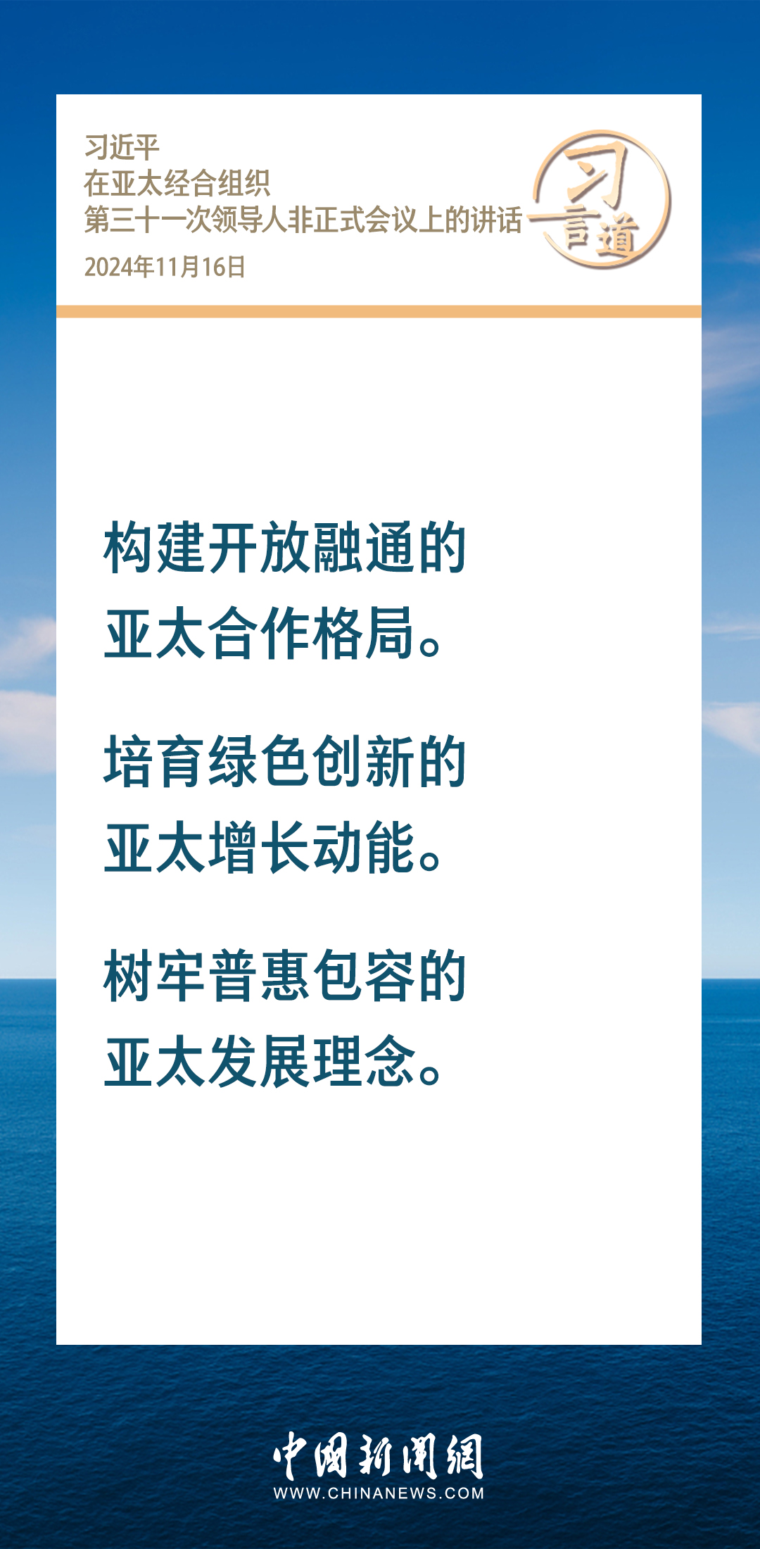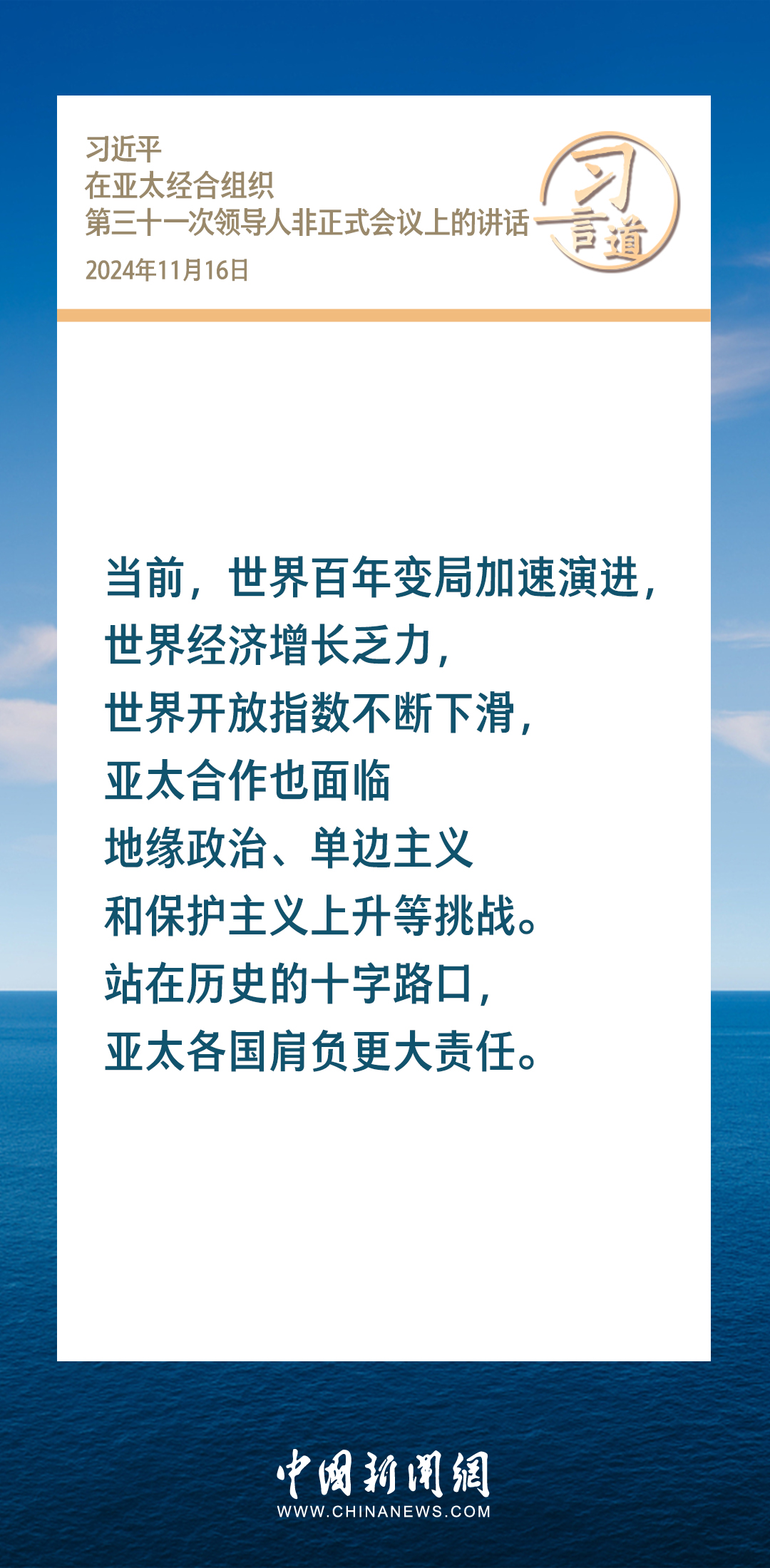 當(dāng)?shù)貢r(shí)間11月16日,國(guó)家主席習(xí)近平出席亞太經(jīng)合組織第三十一次領(lǐng)導(dǎo)人非正式會(huì)議并發(fā)表重要講話。習(xí)近平指出——