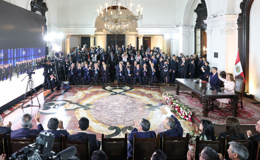 當(dāng)?shù)貢r間11月14日晚,國家主席習(xí)近平同秘魯總統(tǒng)博魯阿爾特在利馬總統(tǒng)府以視頻方式共同出席錢凱港開港儀式。