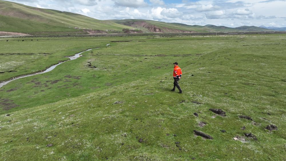 9月24日,生態(tài)管護(hù)員那瓦才郎在草場(chǎng)上巡護(hù)。(受訪者供圖)