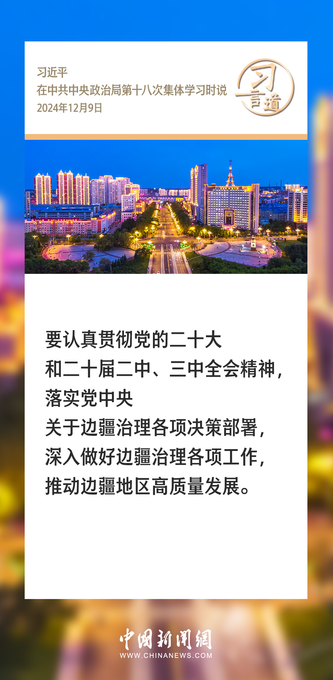 中共中央政治局12月9日就我國歷史上的邊疆治理進(jìn)行第十八次集體學(xué)習(xí)。中共中央總書記習(xí)近平在主持學(xué)習(xí)時(shí)強(qiáng)調(diào)——