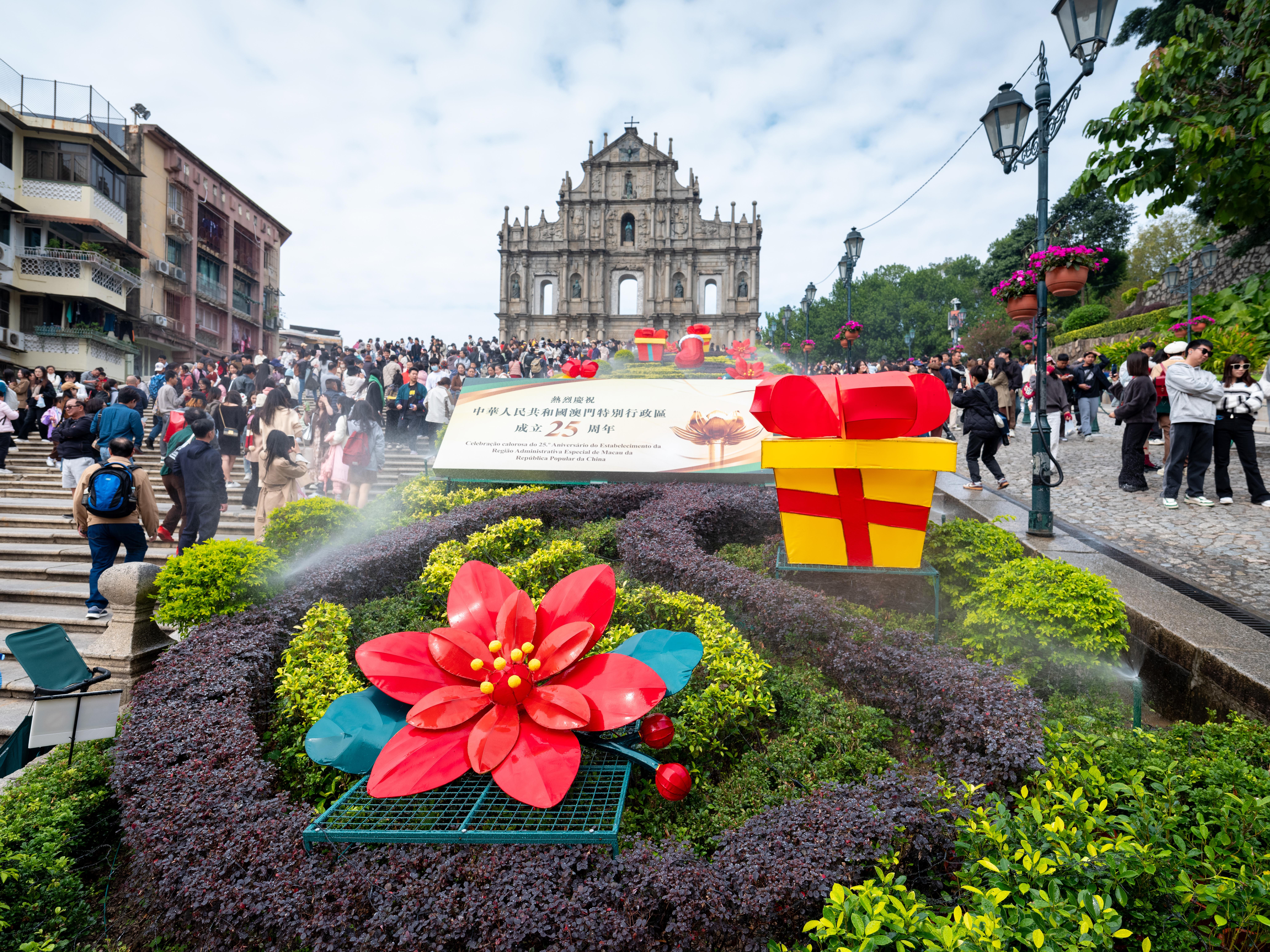 連日來,澳門大街小巷精心裝扮,喜迎澳門回歸祖國25周年。