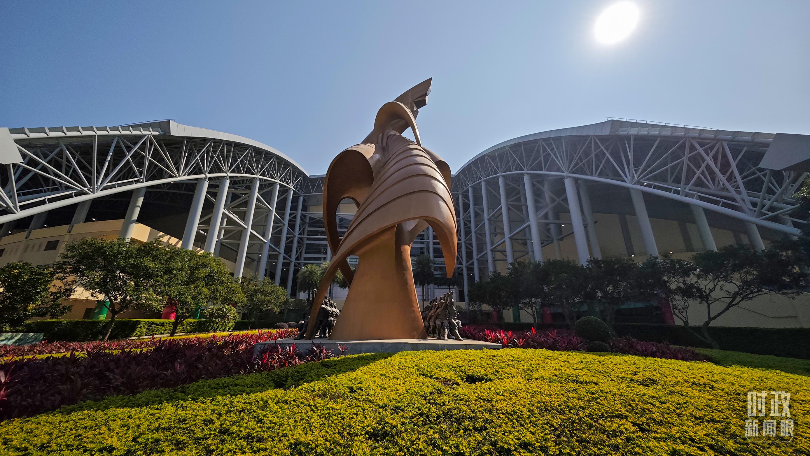 澳門東亞運(yùn)動會體育館前,名為“揚(yáng)帆”的巨型雕塑熠熠生輝。(總臺央視記者彭漢明拍攝)