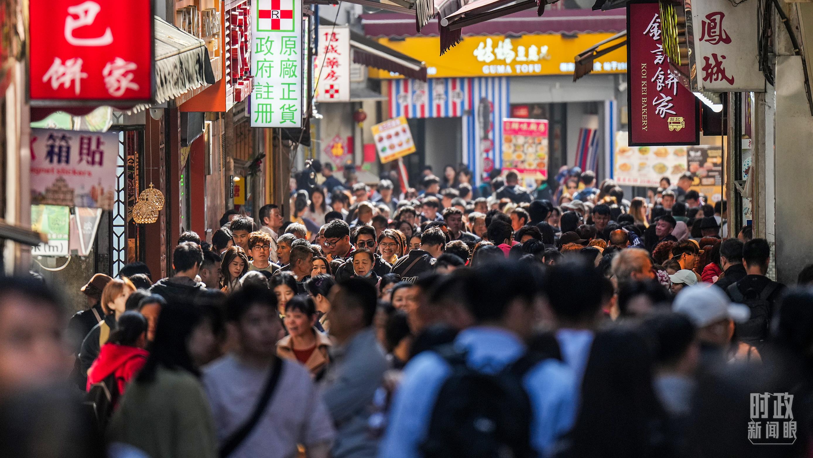 澳門街頭人流如織。(總臺記者李晉拍攝)