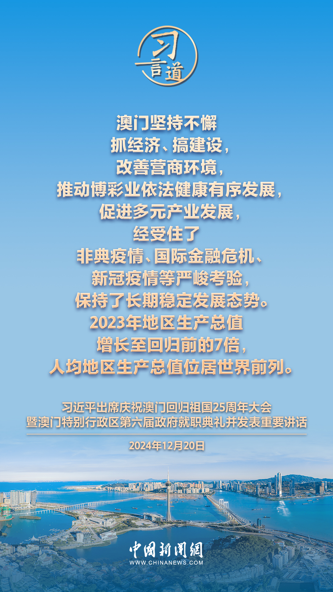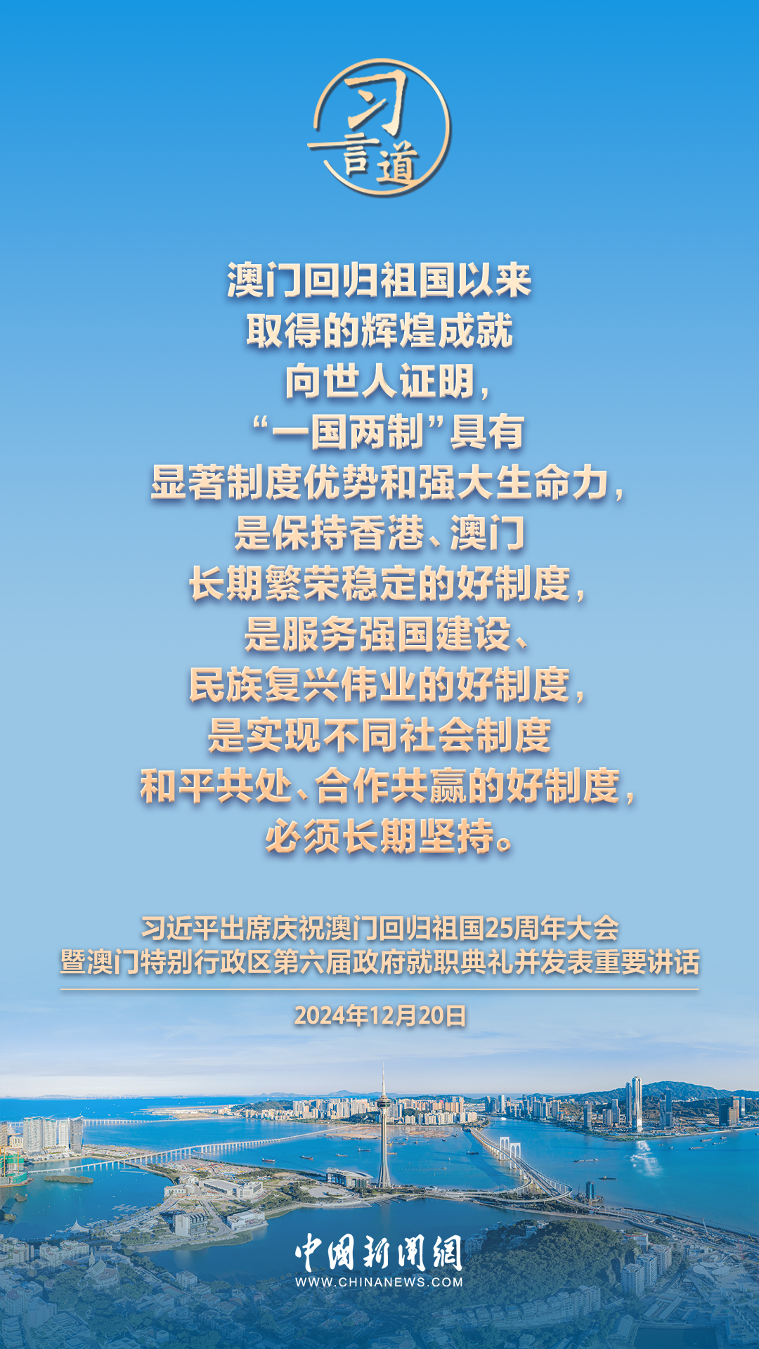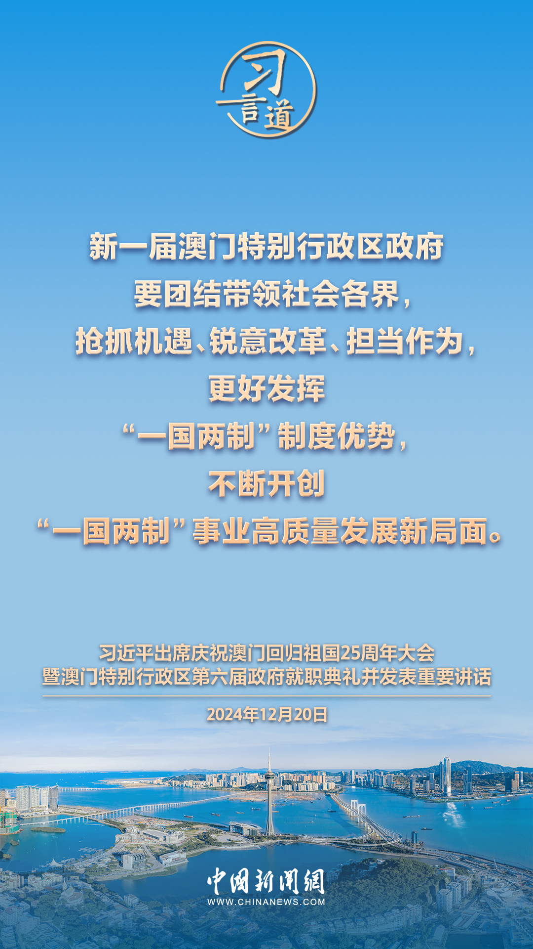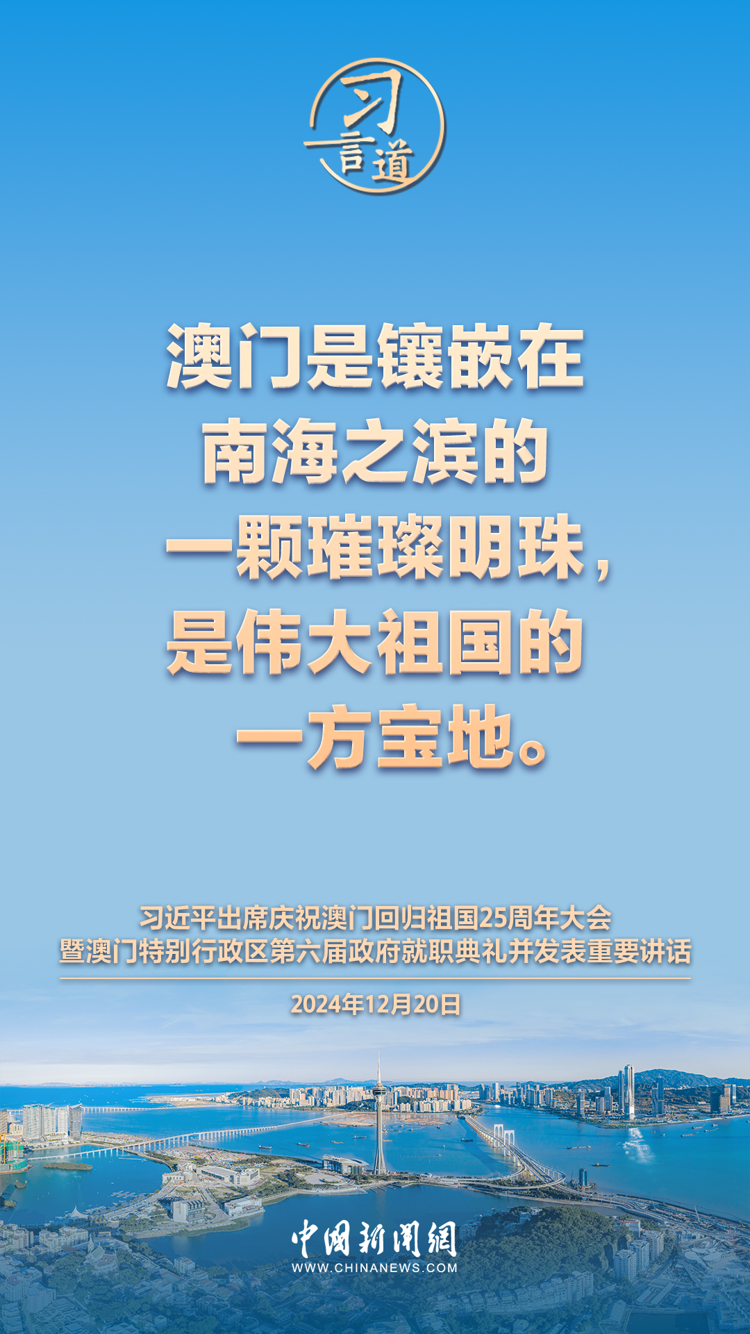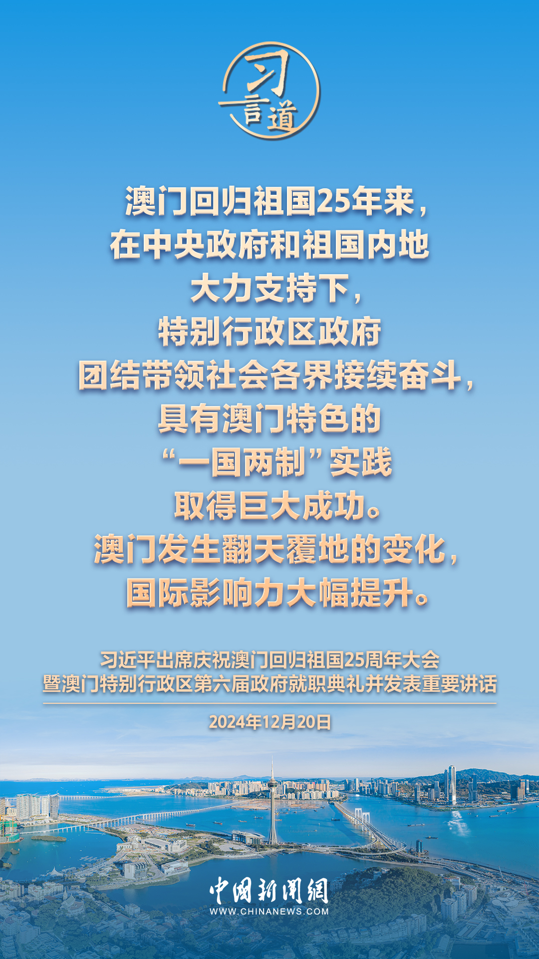 慶祝澳門回歸祖國25周年大會暨澳門特別行政區(qū)第六屆政府就職典禮20日在澳門東亞運動會體育館隆重舉行。中共中央總書記、國家主席、中央軍委主席習(xí)近平出席并發(fā)表重要講話,習(xí)近平指出——