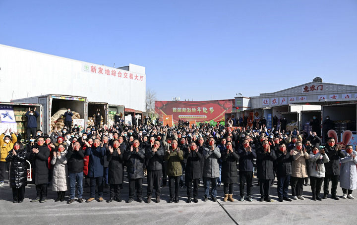 2023年1月18日,北京新發(fā)地農(nóng)產(chǎn)品批發(fā)市場留守的商戶和采購年貨的群眾同習(xí)近平總書記視頻連線。